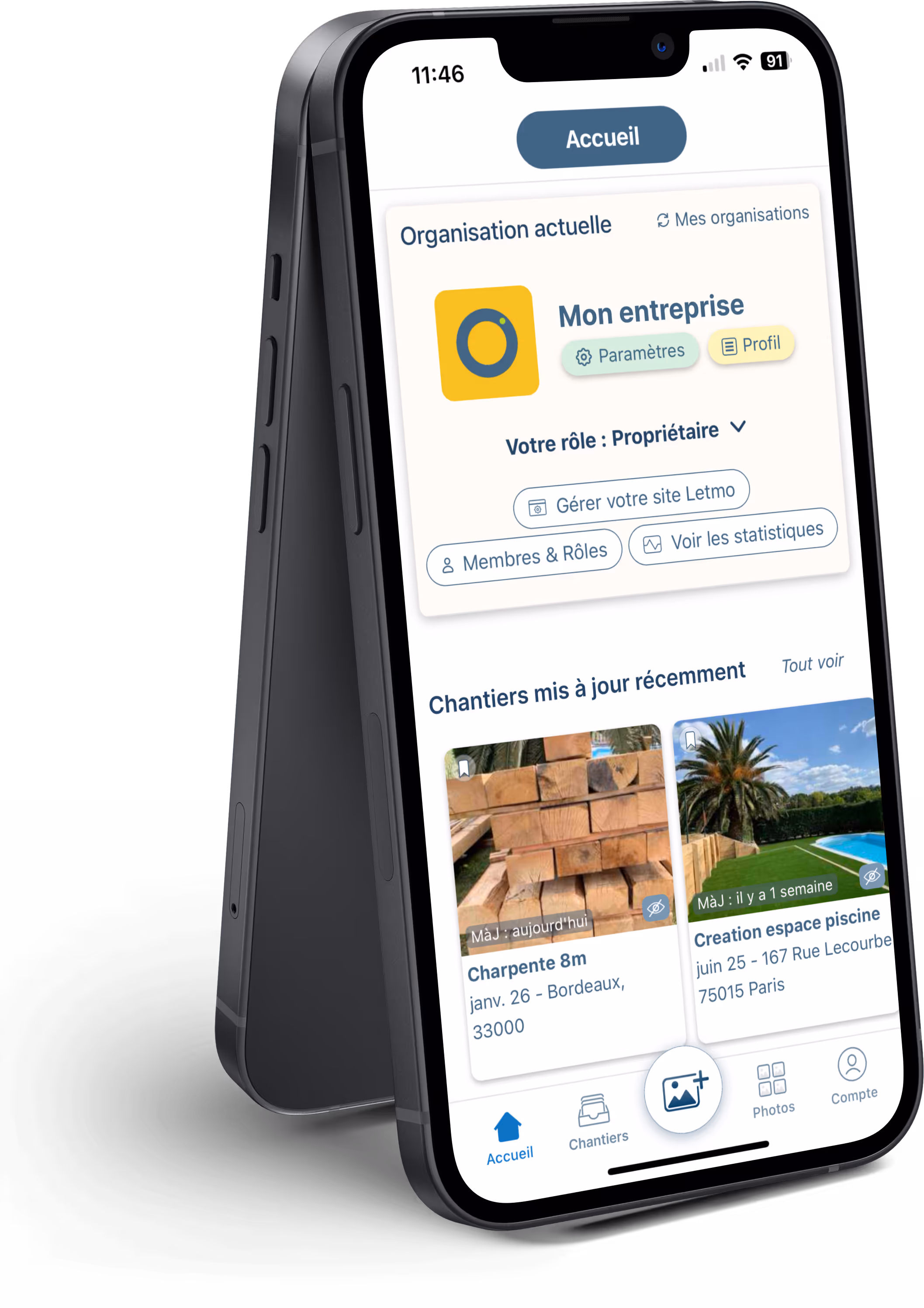 Les dossiers servent à structurer les photos dans Letmo (par événement, par chantier, par thème...). Leur visibilité est réglable par rôle ou par membre.